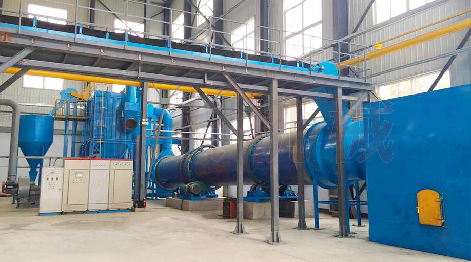 污泥由給料機(jī)經(jīng)溜槽進(jìn)入干燥機(jī)內(nèi)導(dǎo)料板上,隨著筒體的轉(zhuǎn)動(dòng),污泥被送到傾斜揚(yáng)料板上后,被提升到筒體的中心位置,逐漸灑落形成料幕,高溫氣流從中穿 過(guò),使污泥預(yù)熱并蒸發(fā)部分水分。當(dāng)污泥灑落、移動(dòng)到活動(dòng)的篦條式翼板上時(shí),預(yù)熱過(guò)的篦條式翼板與物料夾雜在一起,將熱量傳給物料,使部分水分蒸發(fā)。同時(shí),翼板夾帶物料提起、灑落,重復(fù)多次,物料與熱氣流進(jìn)行熱交換。同時(shí)埋在物料中的清掃裝置,也沿圓弧形揚(yáng)料板的里側(cè)下滑,把揚(yáng)料板內(nèi)壁粘附的物料清掃下來(lái)。 當(dāng)清掃裝置隨筒體轉(zhuǎn)過(guò)垂直線以后,又在圓弧揚(yáng)料板背面拖動(dòng),將其粘附在揚(yáng)料板外壁的物料清掃下來(lái)。隨著筒體的不斷轉(zhuǎn)動(dòng),部分水分蒸發(fā),污泥得到進(jìn)一步干 燥。同時(shí),清掃裝置對(duì)污泥團(tuán)球也起到了打碎作用,提高了干燥速度,最后污泥烘干后變成低水分的松散物料,由出料口排出。