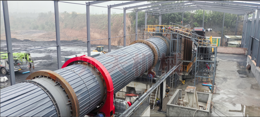 隨著煤泥逐漸干燥,在抄板作用下向出料端移動。出料前,磁選裝置自動清理混入的金屬雜質(zhì),保障成品純度。整個過程中,支撐系統(tǒng)的組合式托輪平穩(wěn)承載滾筒,液壓減震裝置化解運轉沖擊,SKF 軸承配合自動潤滑,確保設備連續(xù)穩(wěn)定運行。